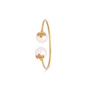 Quiet elegance takes centre stage in the 3-Petal Rosecut Diamond and Pearl Bangle. Crafted in 14K gold, this refined design features a soft floral-inspired motif with three petal-like arms, each accented by rosecut diamonds that exude a gentle, vintage shimmer. At the centre, a glowing natural pearl adds a touch of timeless grace.