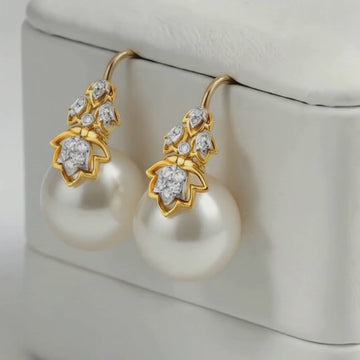 The Inverted Lotus Diamond and Pearl Earrings