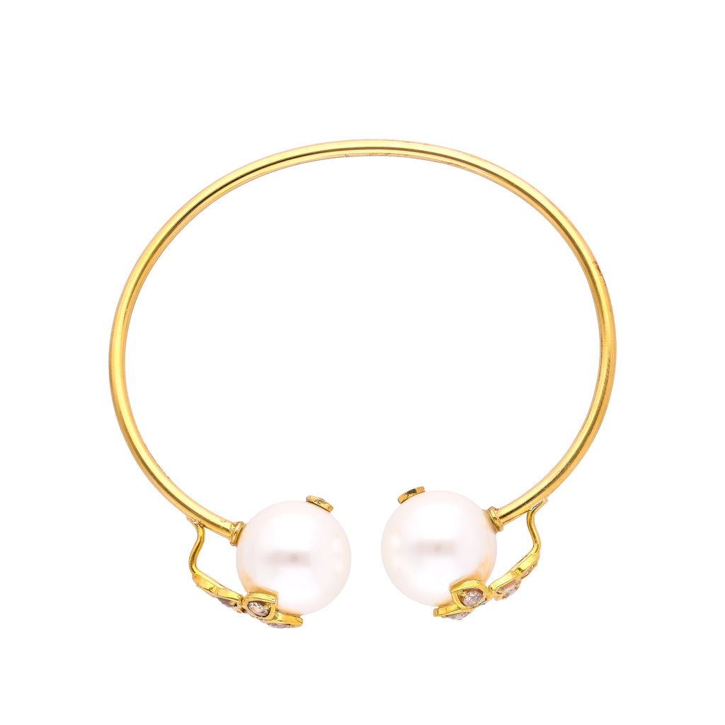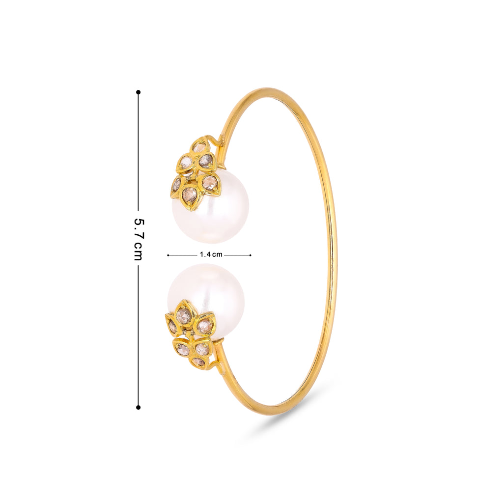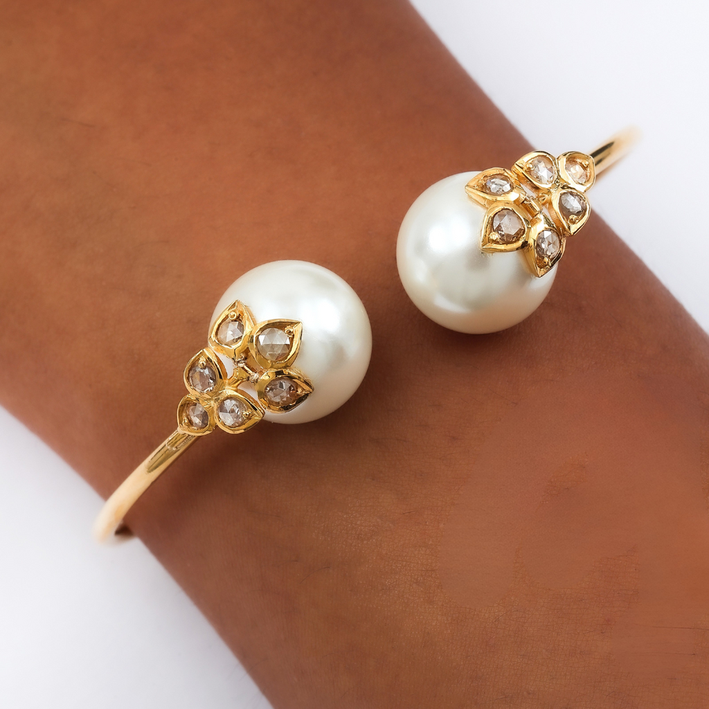Designed to slip effortlessly into your daily wardrobe, this bangle is lightweight, versatile, and elegant — ideal for travel, work, or as a cherished gift. The subtle sparkle of rosecut diamonds paired with the luminous pearl makes it a piece you’ll reach for time and again.