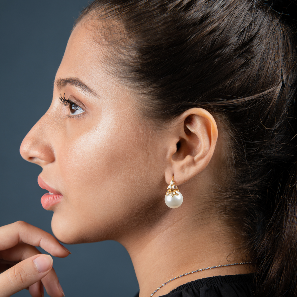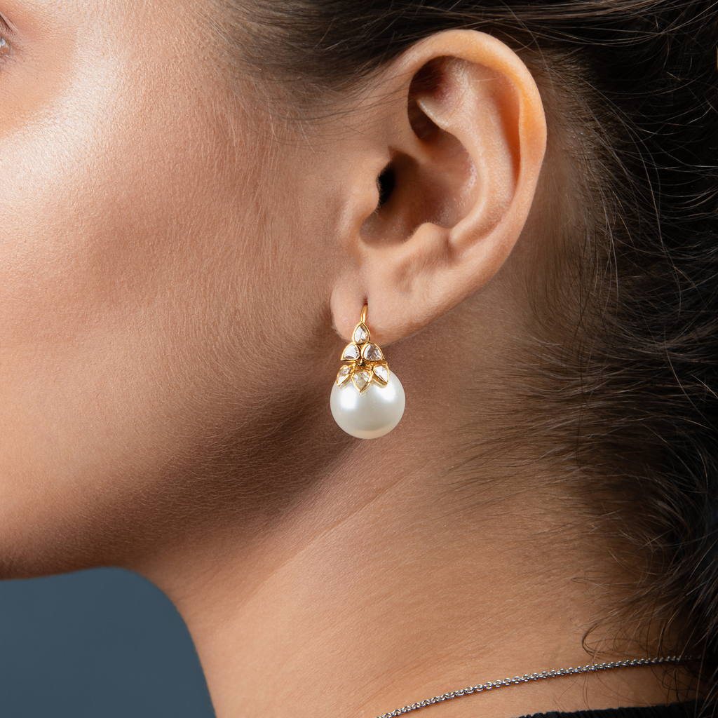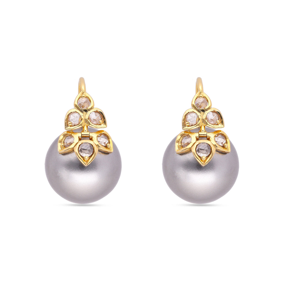 Where heritage meets elegance — the 6-Petal Rosecut Diamond and Pearl Earrings are inspired by the quiet beauty of a flower in full bloom. Crafted in 14K gold, each earring features six soft petal-shaped forms encrusted with rosecut diamonds that offer a gentle, vintage-inspired shimmer. At the centre sits a lustrous natural pearl, radiating understated grace.