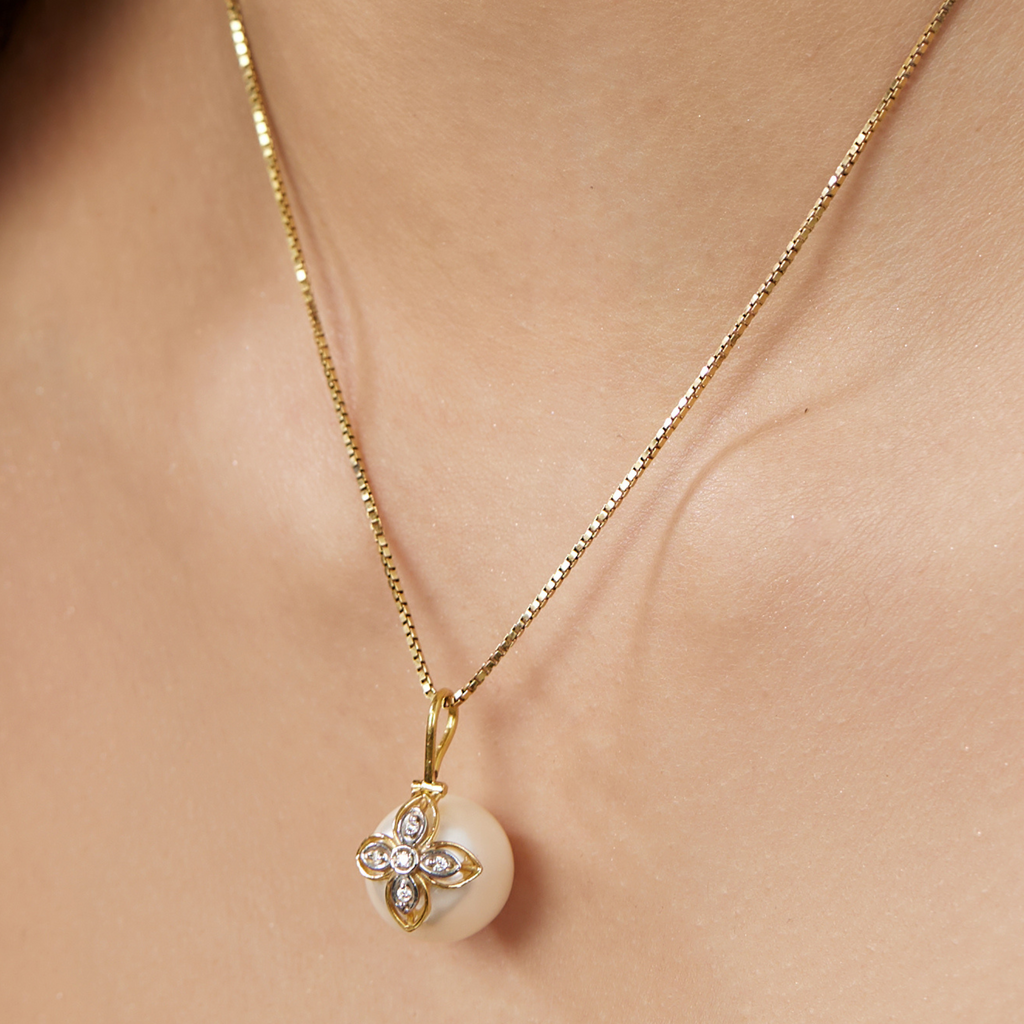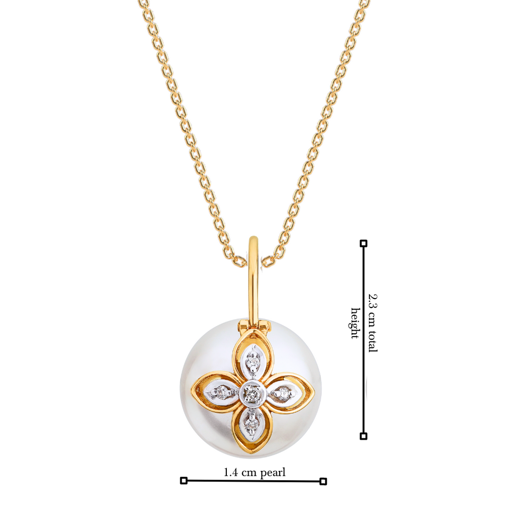 Inspired by the natural elegance of foliage, the Layered Leaf Diamond and Pearl Pendant captures the soft rhythm of leaves overlapping in the wild. Crafted in 14K gold, the design features gracefully stacked leaf motifs set with natural diamonds that catch the light with every move. A single luminous pearl sits at the tip, anchoring the piece with a touch of timeless femininity.