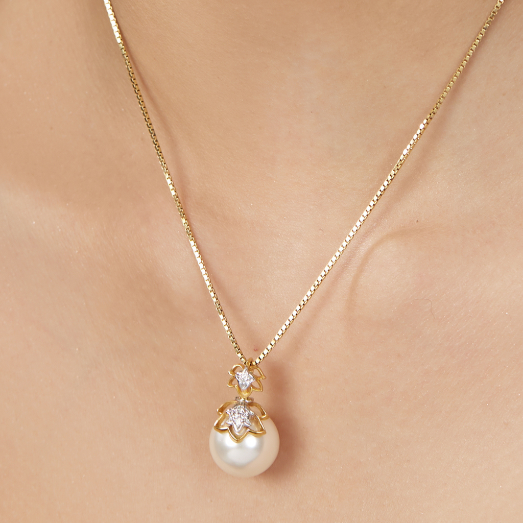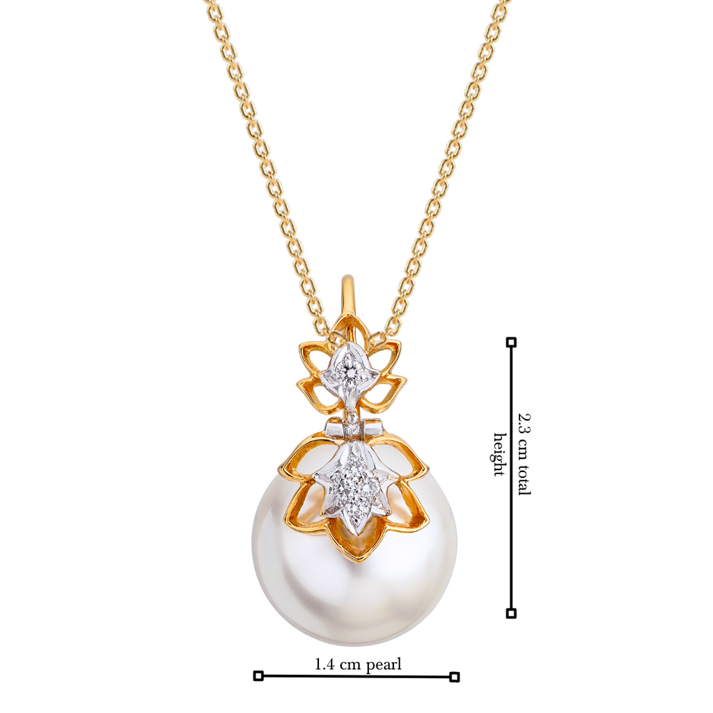 Elegant in form and rich in symbolism, the Mirrored Lotus with Diamonds and Pearl Pendant captures the harmony of reflection and renewal. Crafted in 14K gold, the design features two delicately mirrored lotus petals adorned with natural diamonds, converging toward a single luminous pearl. The result is a pendant that feels both serene and striking — a quiet emblem of strength and beauty.