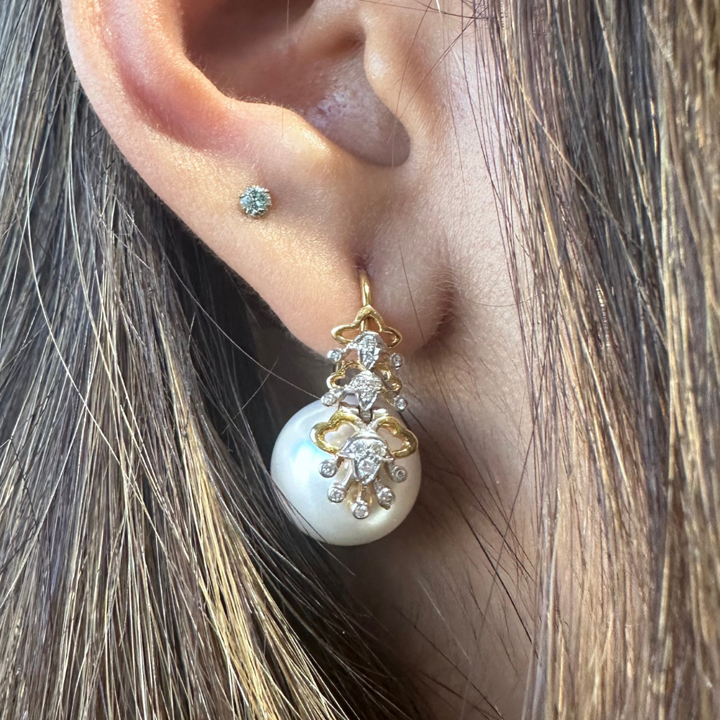 The Radiant Cascade Symphony Diamond and Pearl Earrings