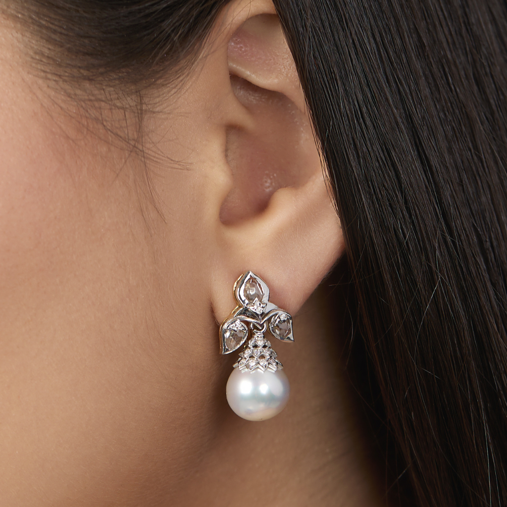 - The combination of rosecut diamonds and a South Sea Pearl creates a harmonious and captivating accessory.