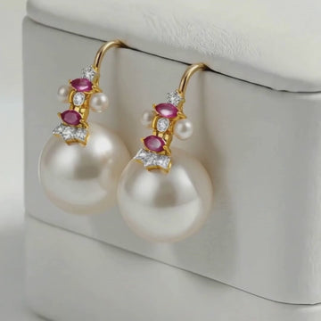 The Royal Crimson Pearl Diamond & Ruby Earrings