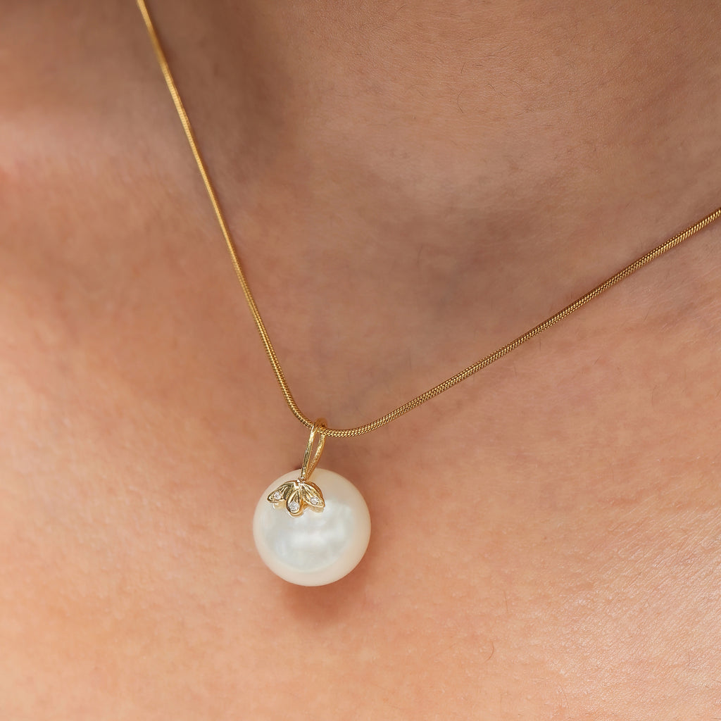 The classic 3 petal diamond and pearl pendant