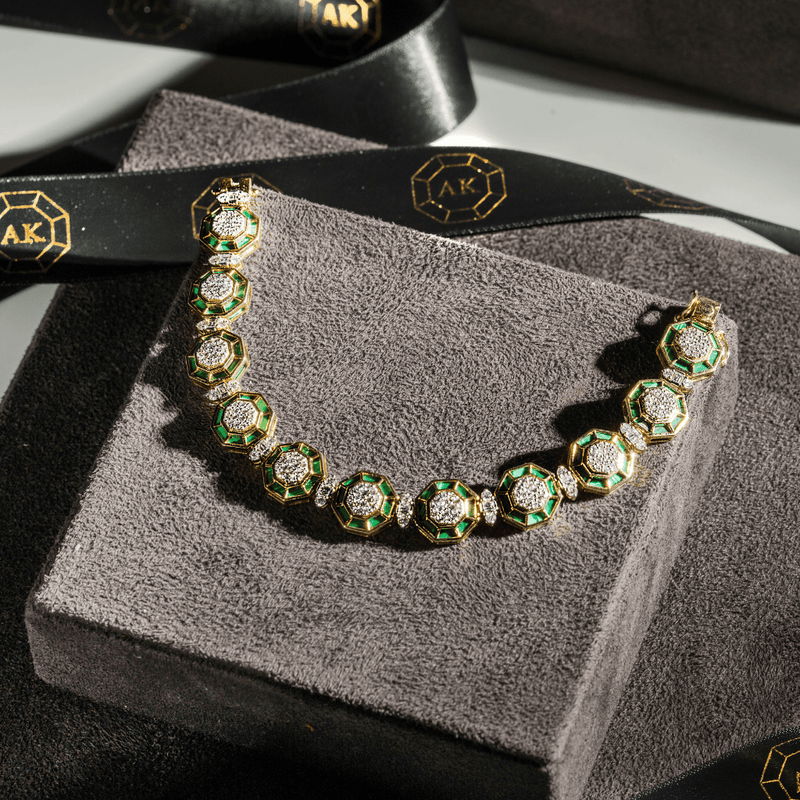 Handcrafted in 18K gold with natural diamonds, emeralds, and rubies chosen for their lasting beauty and value.